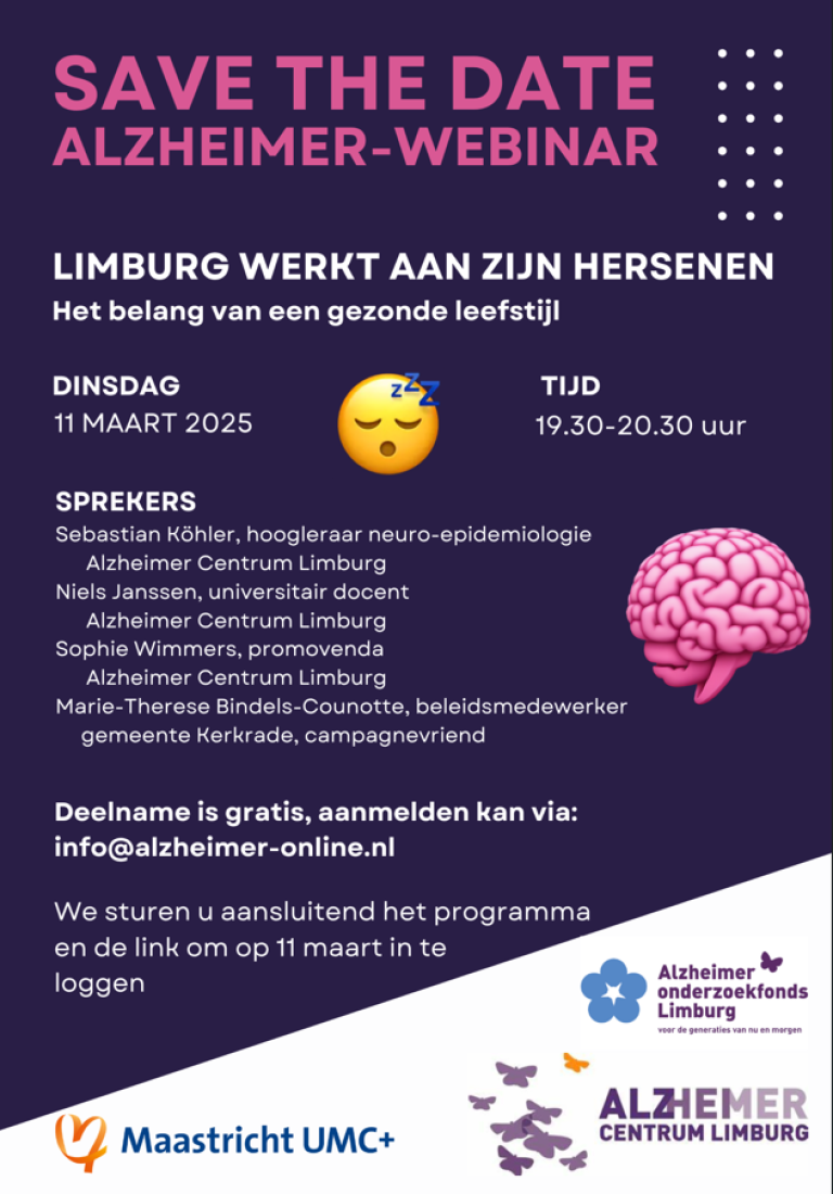 Op dinsdag 11 maart zal het webinar 'Limburg werkt aan zijn hersenen: Het belang van een gezonde leefstijl' plaatsvinden van 19.30 – 20.30 uur.