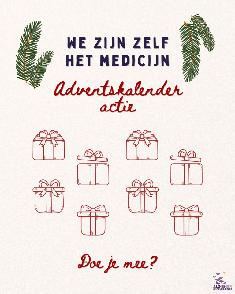 Samen met onze vrienden van de campagne “We zijn zelf het medicijn” hebben we een feestelijke actie bedacht voor alle inwoners van Zuid-Limburg. In december openen we in de eerste drie weken op maandag een deurtje van onze hersengezonde adventskalender.